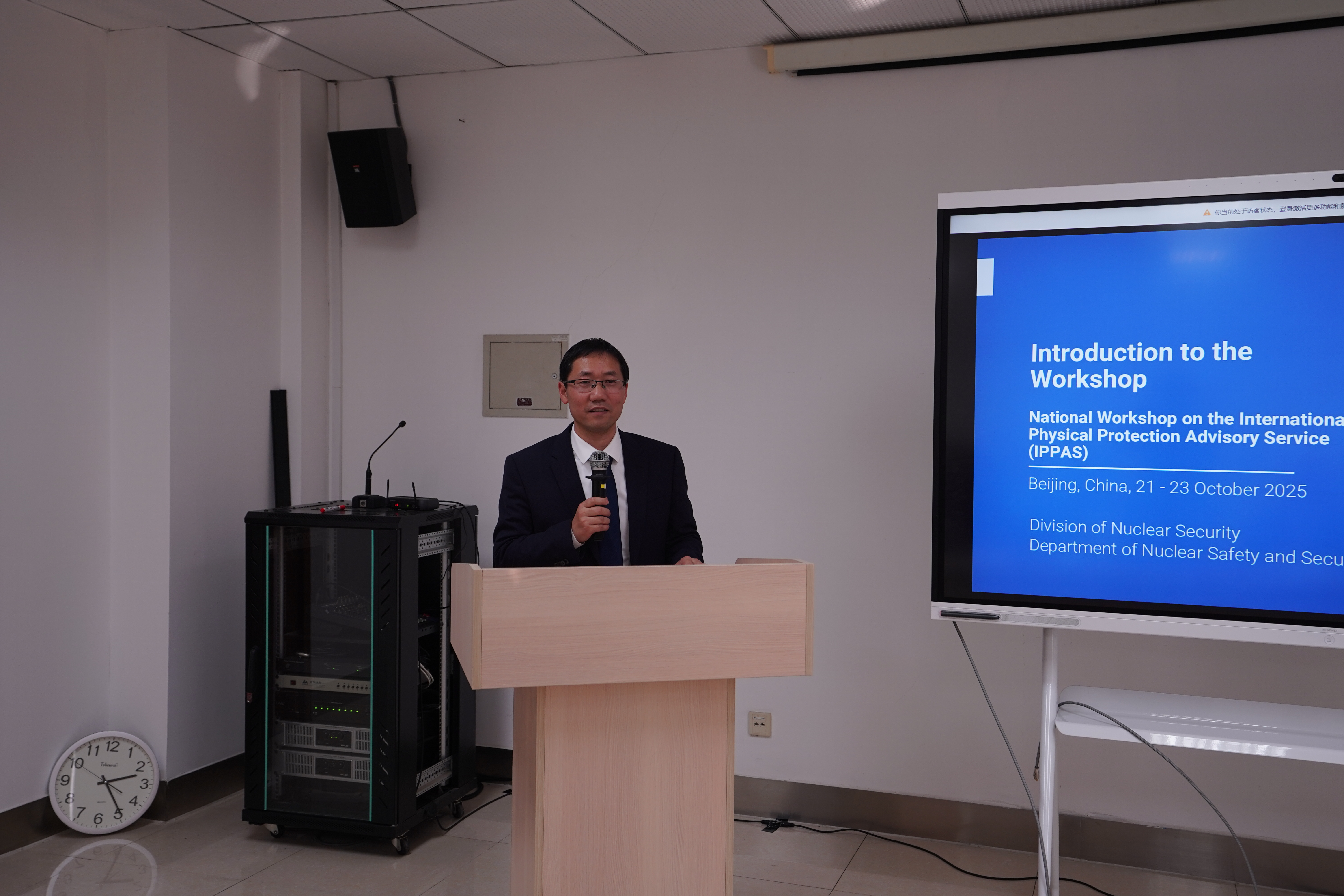 为加强我国核安保体系建设,扎实推动 2026 年国际实物保护咨询服务(IPPAS)后续评估筹备工作,10 月 21 日至 23 日,国际原子能机构实物保护咨询评估国家研讨班在国家核安保技术中心成功举行。来自国际原子能机构(IAEA)以及俄罗斯、匈牙利等国专家,国家原子能机构(CAEA)、公安部、生态环境部、海关总署、中核集团及其所属单位的22名代表出席活动,围绕核设施实物保护、核材料管制等重点议题展开了深入交流。