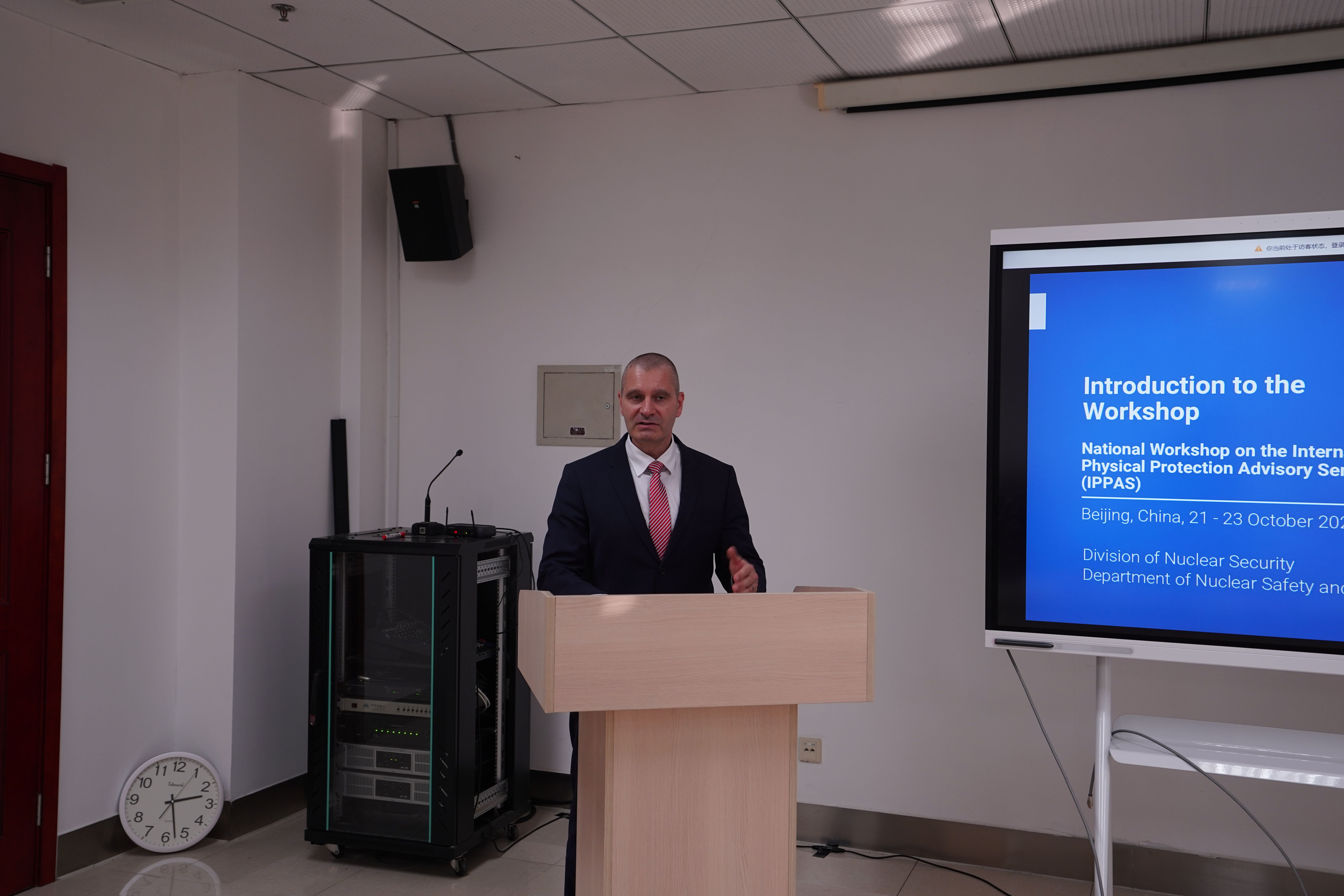 为加强我国核安保体系建设,扎实推动 2026 年国际实物保护咨询服务(IPPAS)后续评估筹备工作,10 月 21 日至 23 日,国际原子能机构实物保护咨询评估国家研讨班在国家核安保技术中心成功举行。来自国际原子能机构(IAEA)以及俄罗斯、匈牙利等国专家,国家原子能机构(CAEA)、公安部、生态环境部、海关总署、中核集团及其所属单位的22名代表出席活动,围绕核设施实物保护、核材料管制等重点议题展开了深入交流。